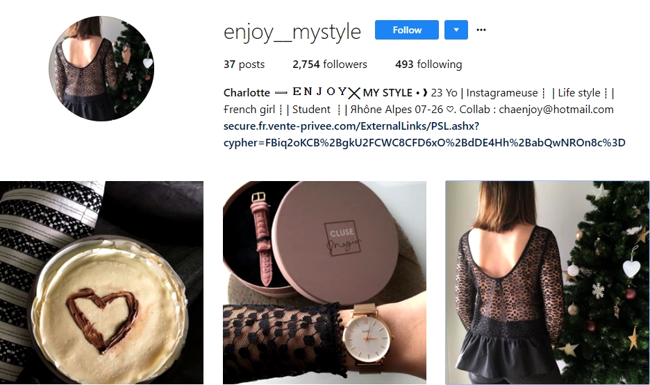 Sur mon compte on retrouve essentiellement de la mode, un soupçon de décoration ( que je souhaite développer) et en tant que grande gourmande je post de temps en temps quelques notes sucrées. 😊