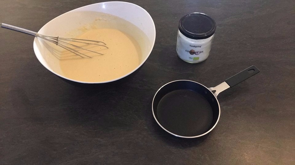 Petit astuce : Pour ma part j'utilise de l'huile de coco dans ma poêle, cela ajoute une petit goût à mes pancakes. Celle-ci vient de la marque FOODSPRING.